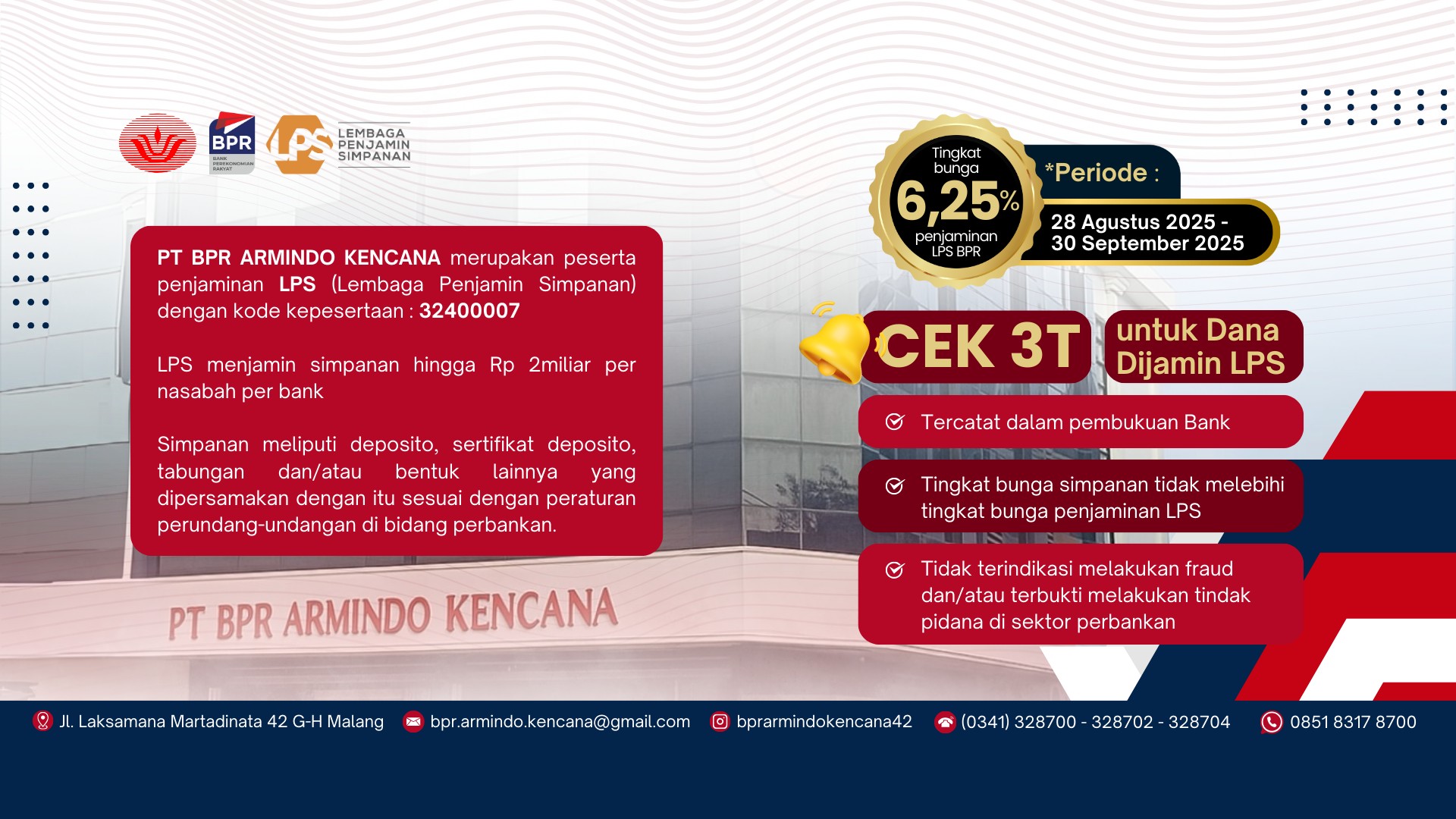 Permodalan dan investasi Anda akan semakin maju dan berkembang bersama PT BPR Armindo Kencana.